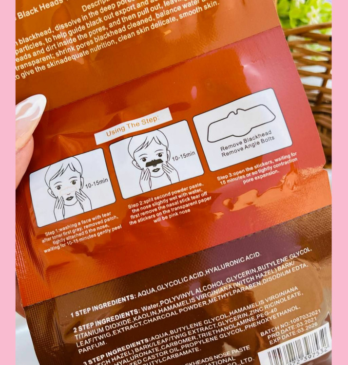 بعد میرید سراغ مرحله ۲ حتما باید پد مرحله دوم مرطوب کنید و بعد بچسبونید روی بینی بعداز ۱۵ دقیقه چسب رو جدامیکنید و ازنزدیک که نگاهش کنید پراز جوش سرسیاه شده