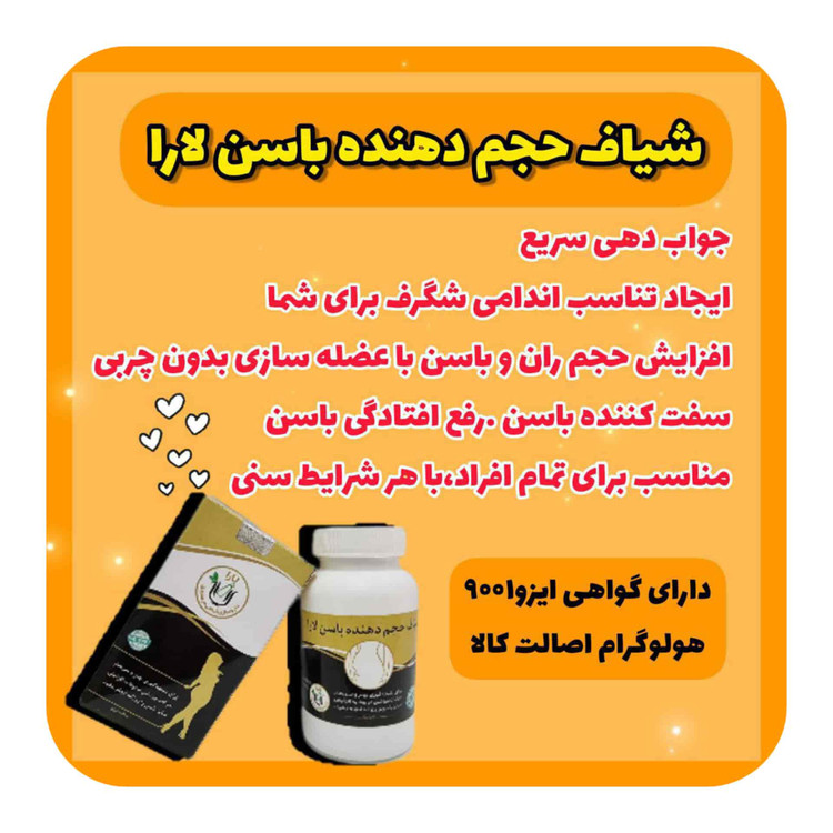 شیاف حجم دهنده باسن لارا محصولی از شرکت مرهم شفا لارا میباشد که جزو بهترین شیافهای حجم دهنده در ایران است. شیاف حجم دهنده لارا ، با افزایش و تنظیم هورمونهای مخصوص ماهیچه سازی اندام لگن، موجب افزایش میزان حجم لگن از طریق پروتئین سازی میشود.