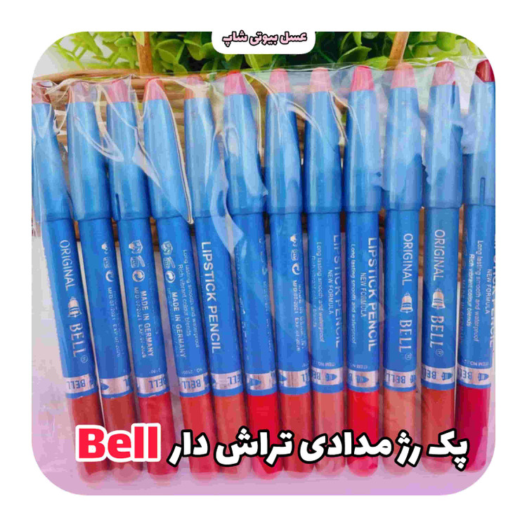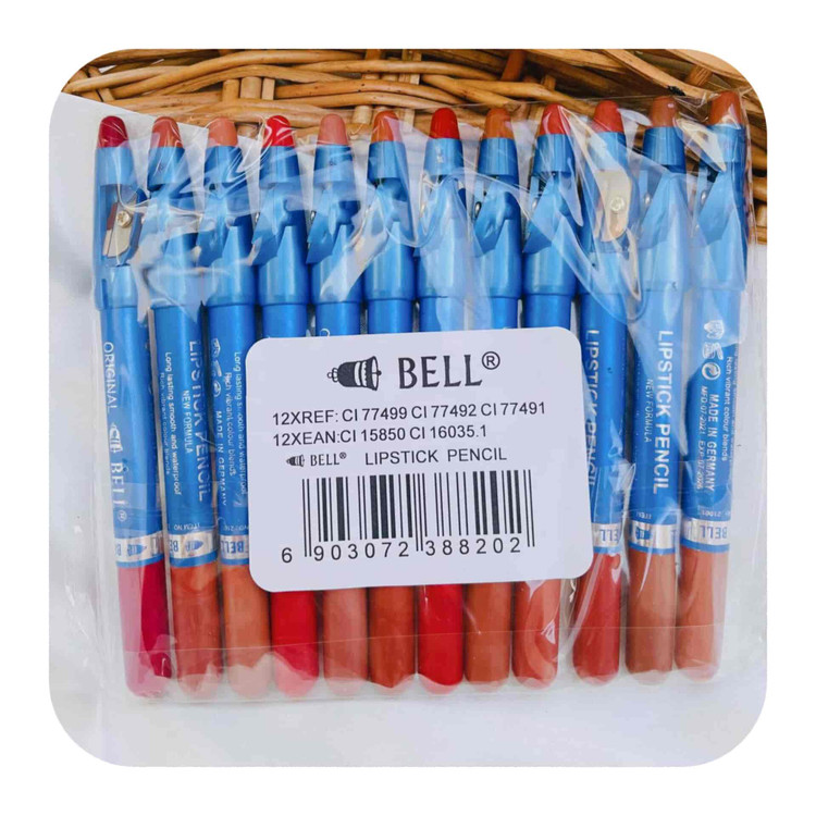 رژ مدادی تراش دار برند بل BELL بسته 12 عددی