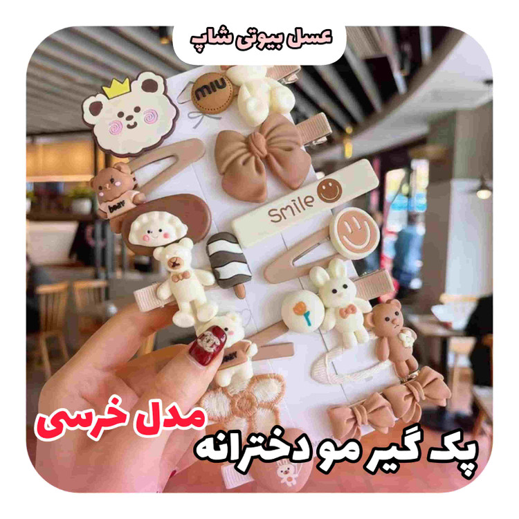 تعداد ۱۴ عدد گیر مو طرح های خشکل و فانتزی و دخترووونه