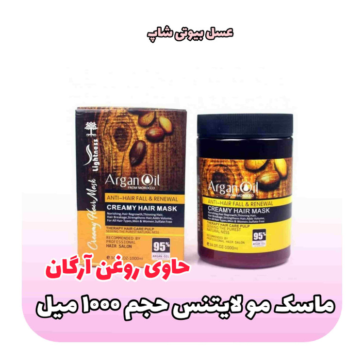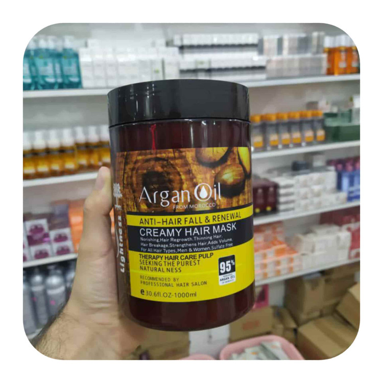 ماسک مو آرگان روغن لایتنس Lightness با حجم 1000میل حاوی روغن آرگان، مناسب برای رطوبترسانی، درخشانکنندگی و شادابی ساقه مو. تقویت ساقه مو و از بین بردن آسیبهای ناشی از حرارت (اتو مو و سشوار) و مواد شیمیایی (رنگ مو و دکلره) میباشد. تماس ماسک مو لایتنس با پوست سر مانعی نداشته، و بنابراین افراد دارای موهای کوتاه نیز میتوانند از این محصول استفاده کنند.