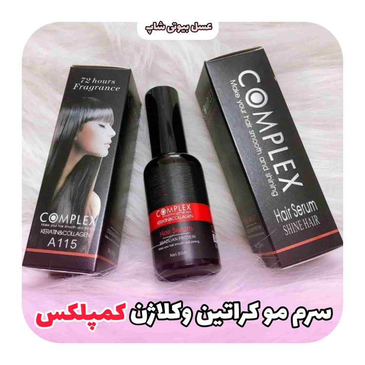 سرم مو کراتین کلاژن کمپلکس باعث افزایش استحکام و حالت پذیری بهتر موها و ترمیم ساقه موهای آسیب دیده می شود، از بین برنده خشکی و انشعابات مو می باشد.